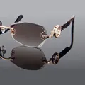 Gmei Optical Titanium Alloy Men's Diamond Trimming Cutting Rimless Glasses Frame With Gradient Grey Tint Plano Lenses YD924