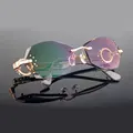 Gmei Optical Stylish Alloy Women Rimless Glasses Frame With Diamond Trimming Cut Gradient Purple Tinted Plano Lenses Z2870